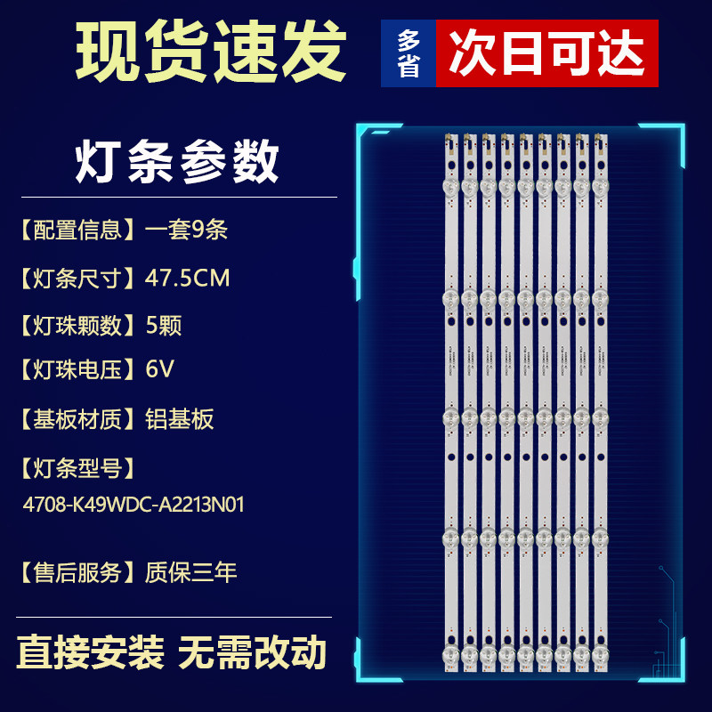全新适用飞利浦49BDL3056Q液晶电视背光灯条4708 A2213N01 K49WDC由