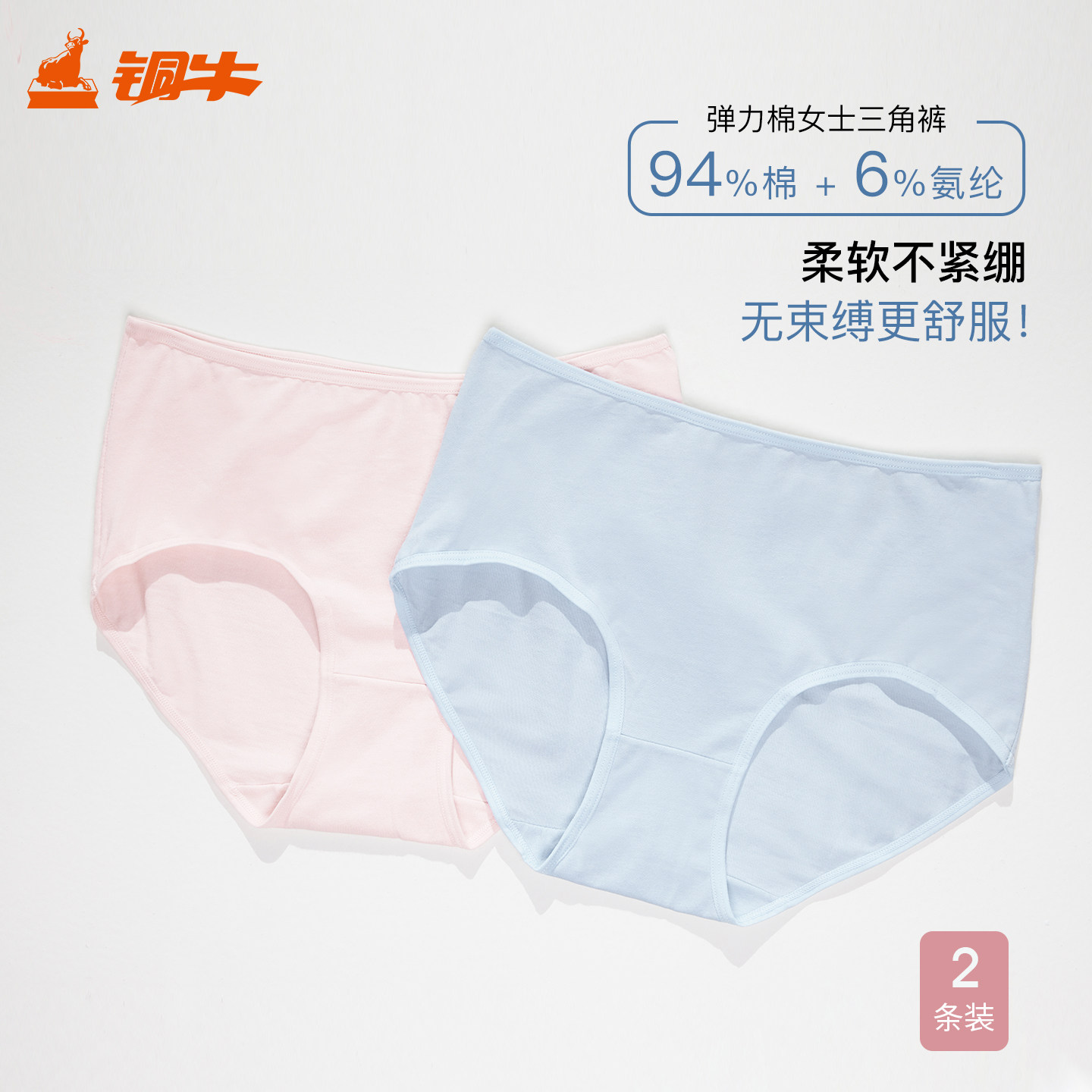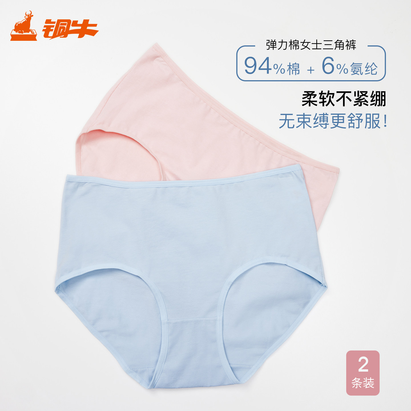 纯色中腰内裤 透气亲肤VC034 2条装 铜牛弹力棉女士三角裤