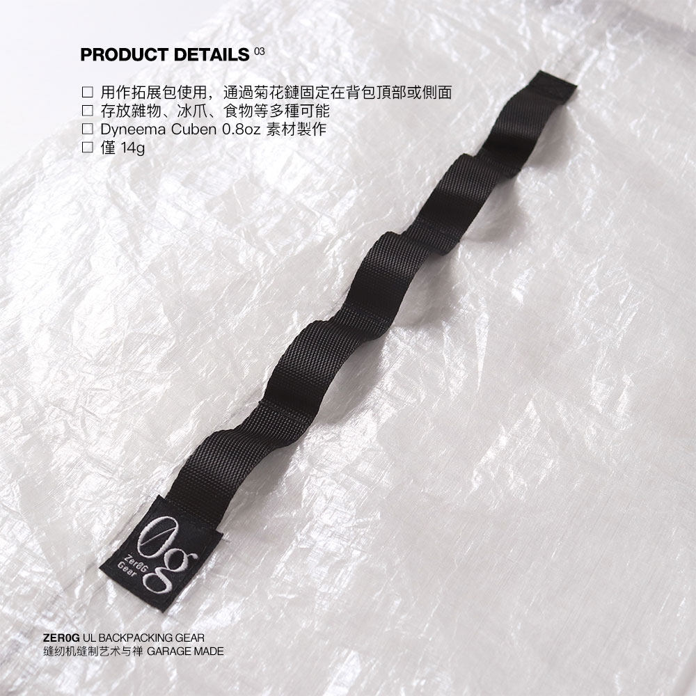 为您提供商品背包顶包侧挂包 Zer0g 轻量化拓展包 14克 粗苯cuben收纳包袋的详细介绍,