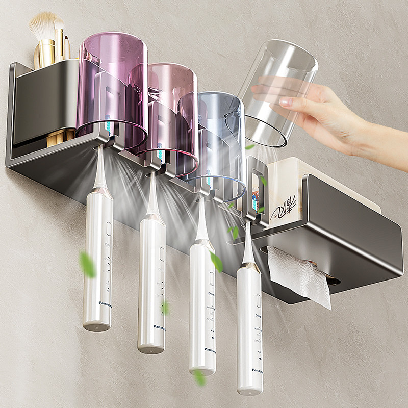 卫生间浴室纸巾盒多功能一体收纳架 牙刷漱口杯置物架免打孔壁挂式