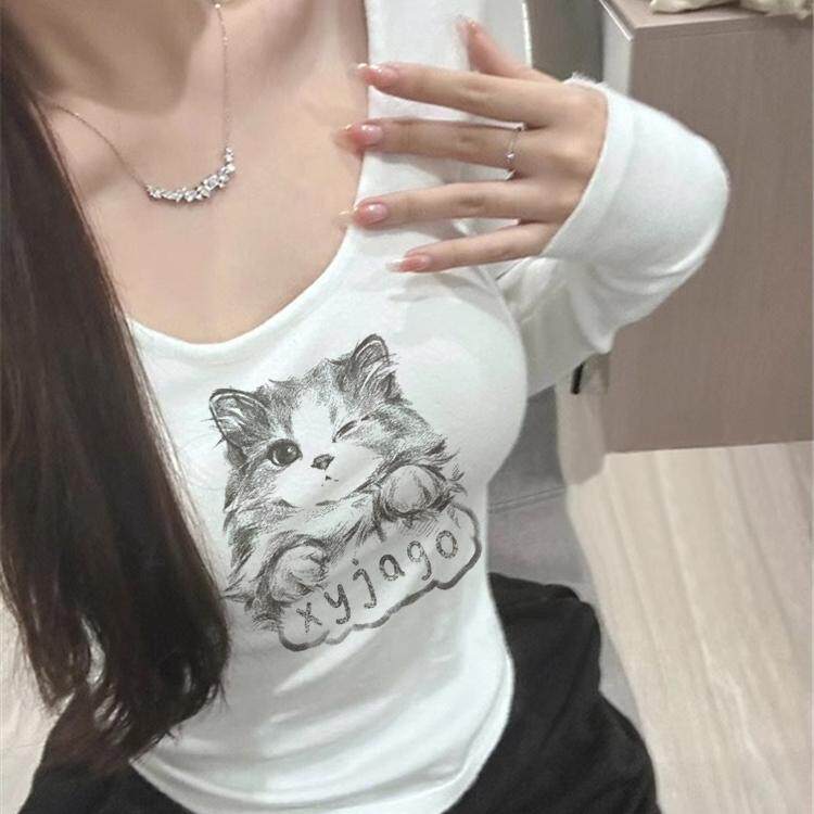 t恤上衣2026新款 高级感德绒打底衫 女士秋冬内搭辣妹修身 短款 爆款