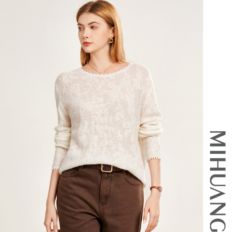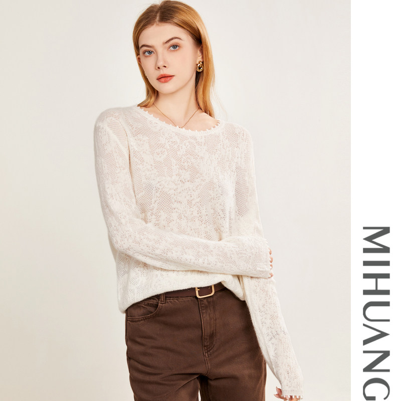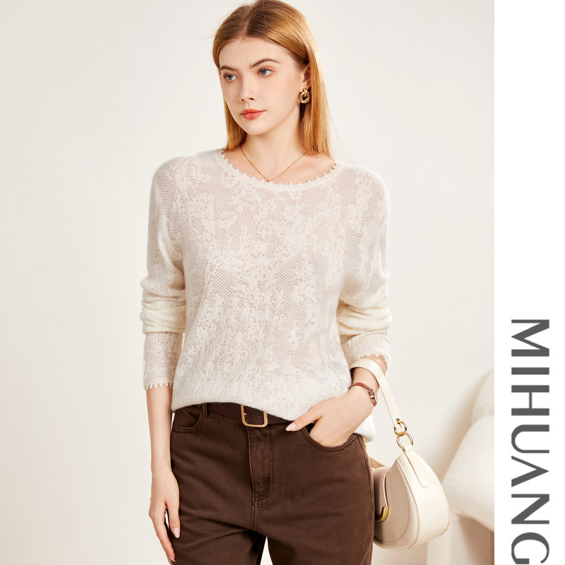米皇秋季 圆领套头羊绒衫 女百搭纯色轻薄纯羊绒针织衫 毛衣 新款由