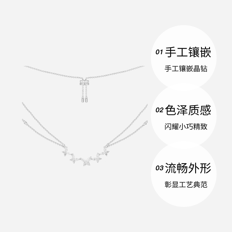 颈链配饰 双层叠戴锆石小蛮腰项链女毛衣链高级感轻奢小众2026新款