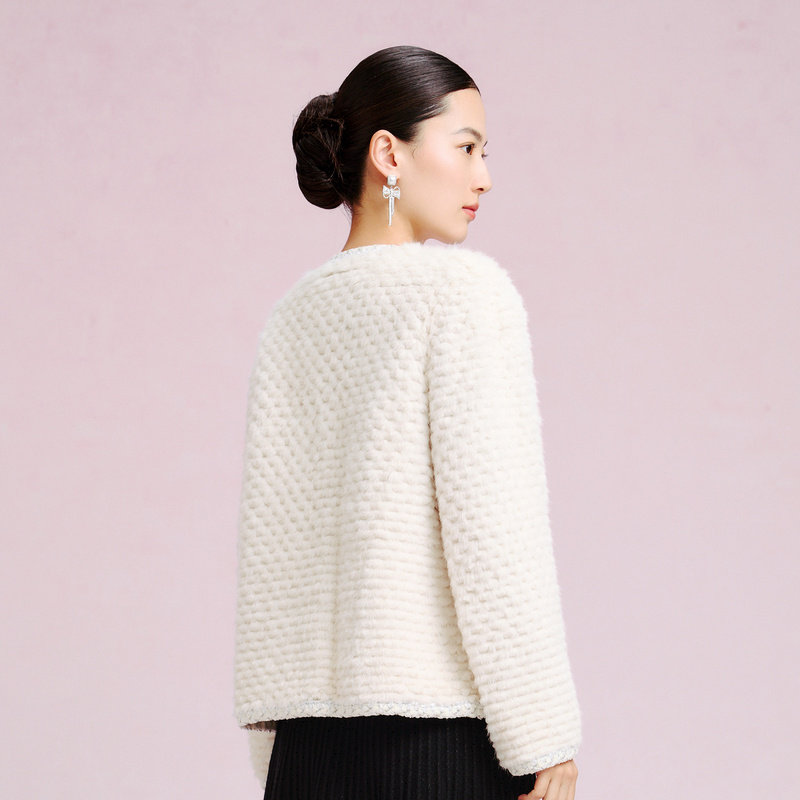 FTT 半熟蜜桃 环保皮草外套女秋冬季 保暖毛毛上衣 FlyTheTruth
