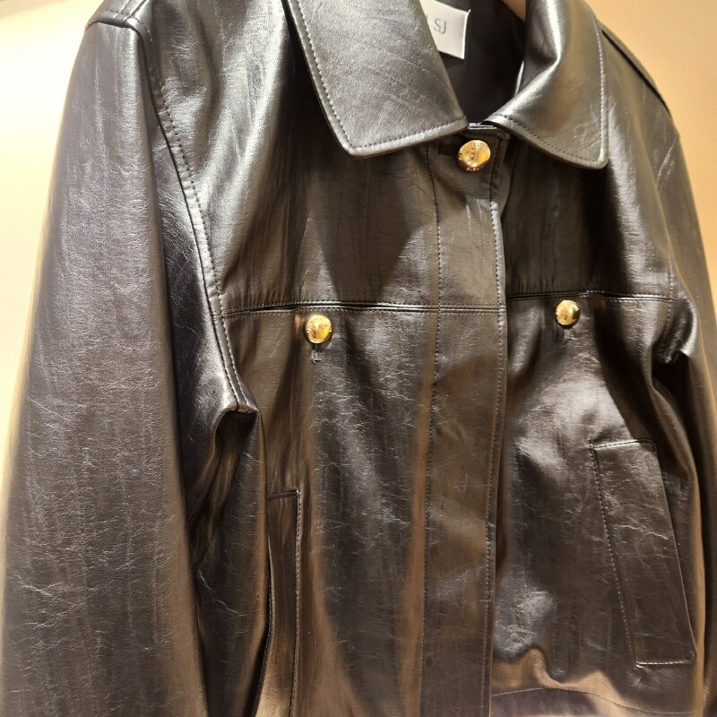 小C家 春季 酷飒风机车服设计感短款 夹克 黑色pu皮衣外套女2026新款