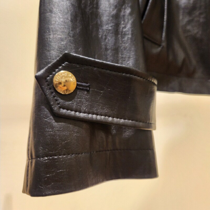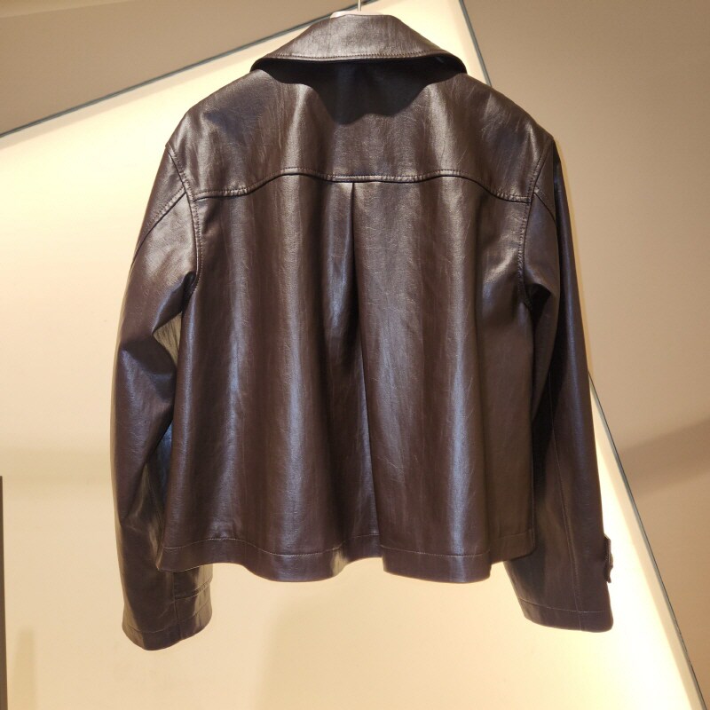 aaaaxbbb 小众时髦两色皮衣短款 夹克上衣垫肩外套女春款 胡桃手信
