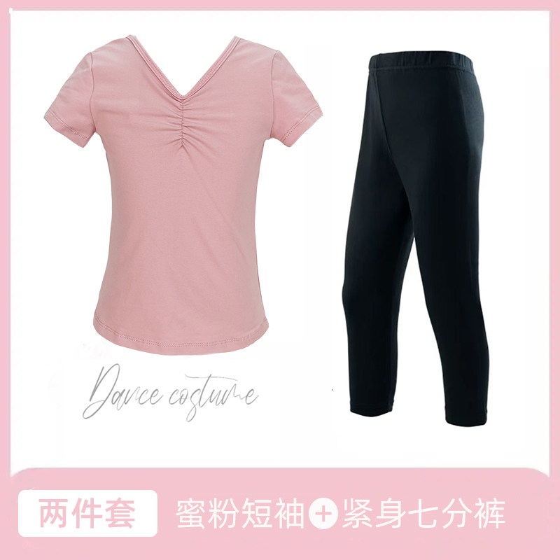 咔萌琪儿童舞蹈跳舞练功服女童中国舞粉色芭蕾演出服春夏长短袖 款