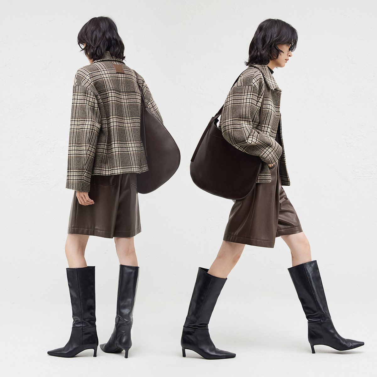 播倪妮同款 商场同款 复古格纹24冬毛呢短外套女BDR4WD3743 羊毛