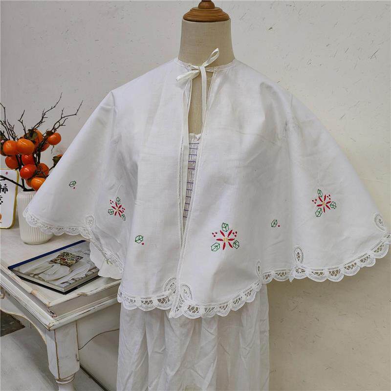 F224 有氧化 白色蕾丝绣花斗篷45cm宽由