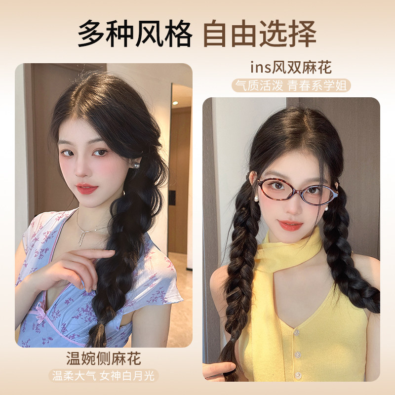 为您提供商品假发辫子韩系温柔侧马尾麻花辫增发量编发神器盘发发束长辫子发饰的详细介绍,