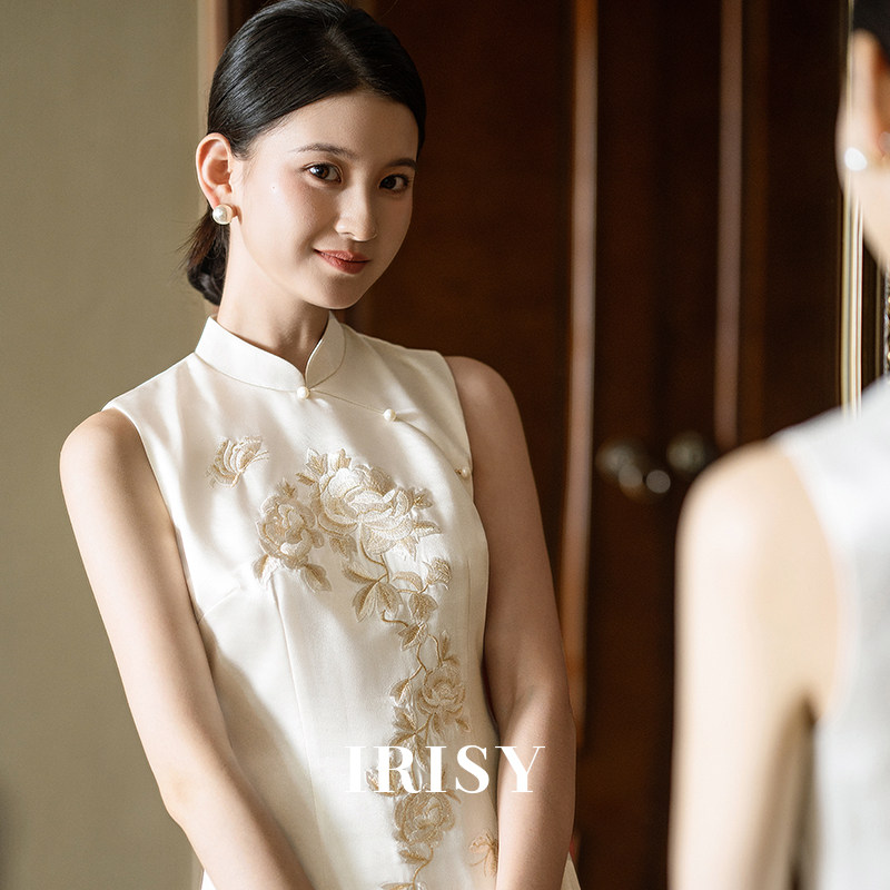 IRISY 气质敬酒服 白色旗袍女重工刺绣改良新娘订婚礼服2026夏新款