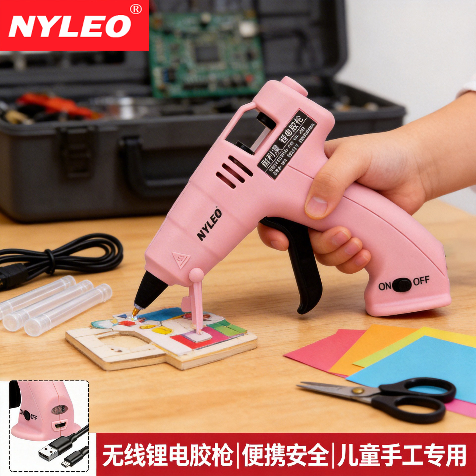 锂电小型胶棒热溶枪 安立信无线热熔胶枪儿童手工家用热熔胶充电式