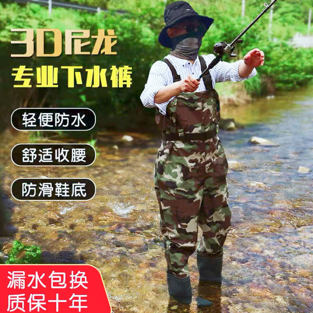 赶海涉水裤 下半身溪流钓连体防水衣钓鱼服 尼龙路亚雨裤 齐腰下水裤