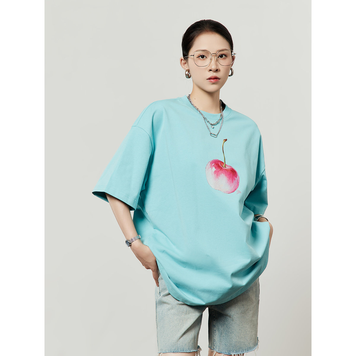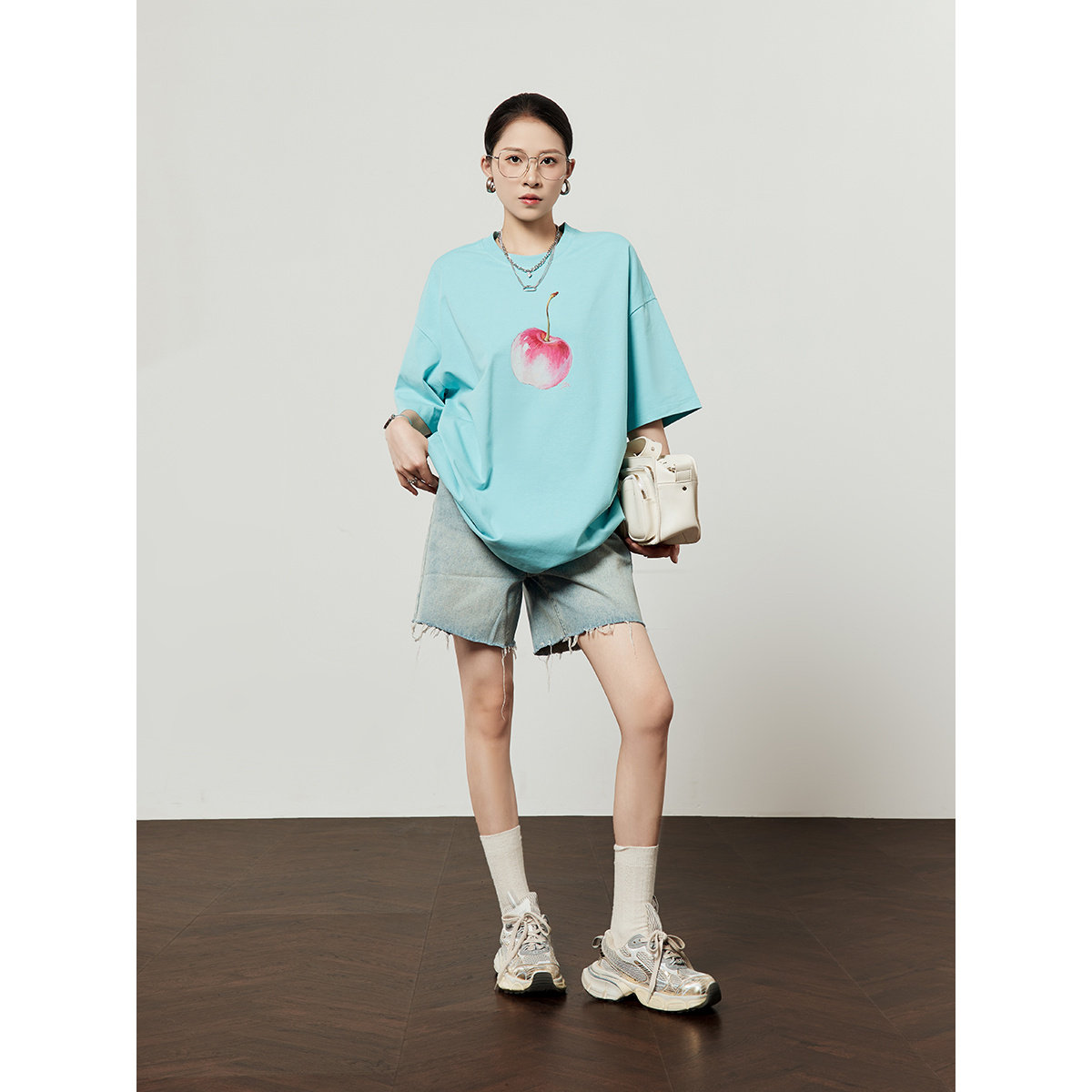 宽松百搭短袖 上衣休闲T恤 清新印花T恤女夏2025新款 周里物由