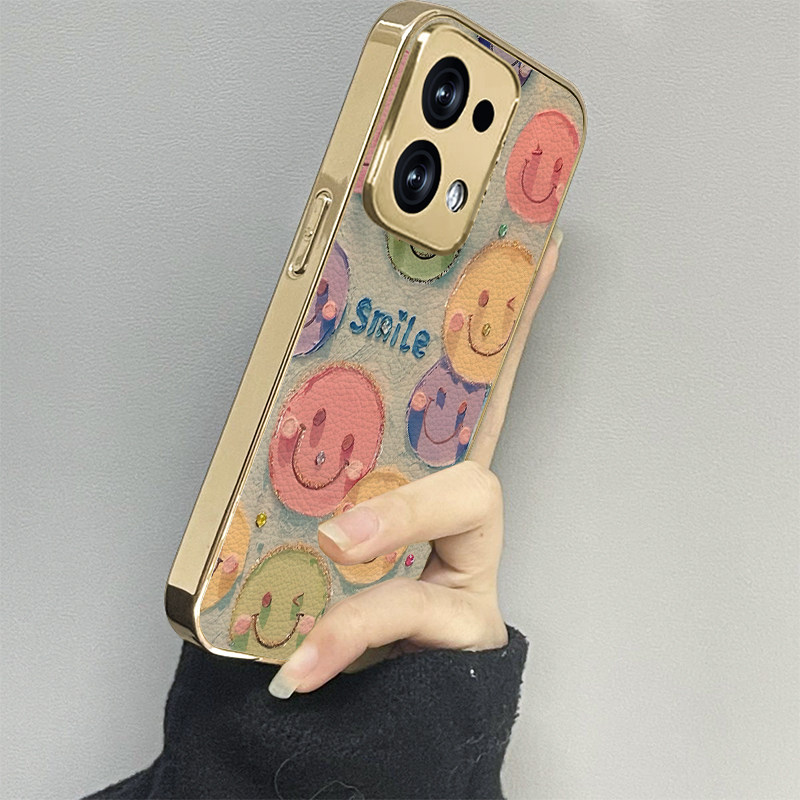情侣9套8可爱7保护6防摔reno3元 油画笑脸适用opporeno14手机壳reno13新款 12男11女款 reno10pro oppo4se5k 气版