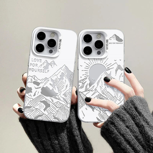 适用苹果16Pro手机壳iPhone17max小米15华为mate70p60nova12荣耀300k80reno14s19一加13 日照金山彩银高级新款