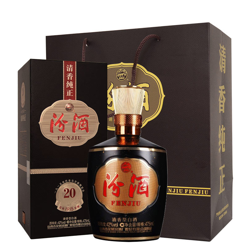 汾酒42度巴拿马20汾酒475mlX6清香型白酒整箱6瓶礼盒装由