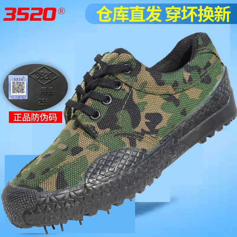 训练耐磨迷彩胶鞋 男女春秋工地干活劳保透气帆布鞋 回力高帮解放鞋