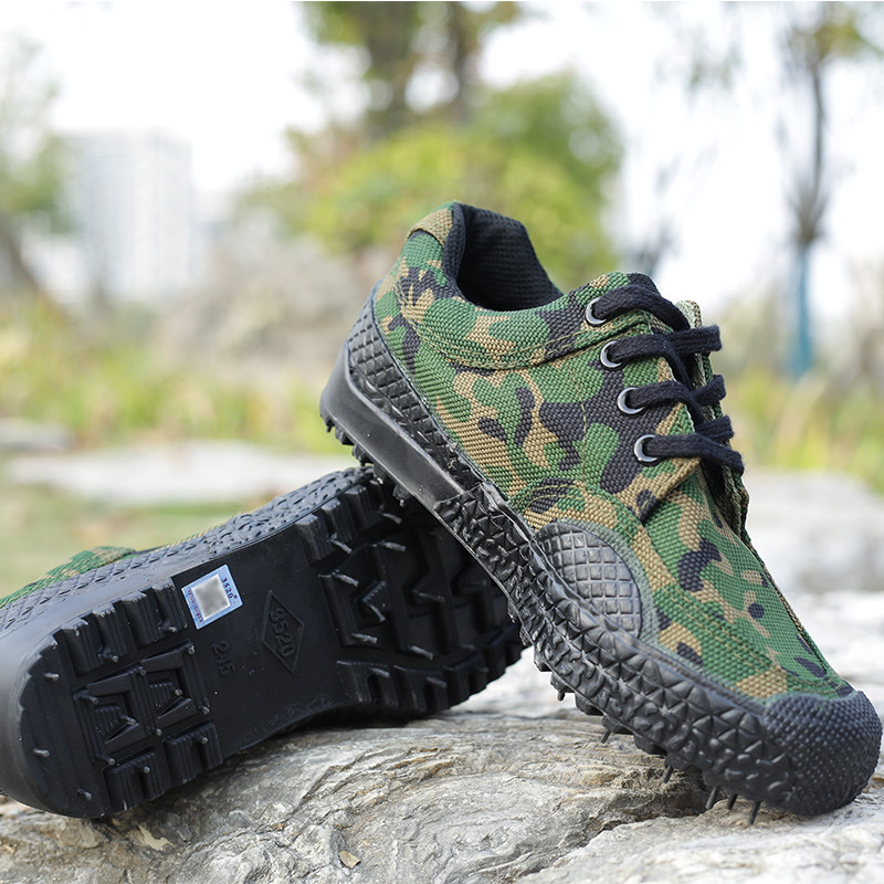 回力解放鞋 女防滑耐磨登山劳保鞋 工地帆布透气低帮徒步鞋 男迷彩鞋