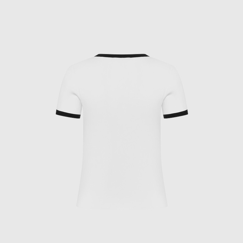 为您提供商品女士休闲撞色圆领T恤短袖 冰柔纱 比音勒芬春秋季 针织衫 打底衫的详细介绍,