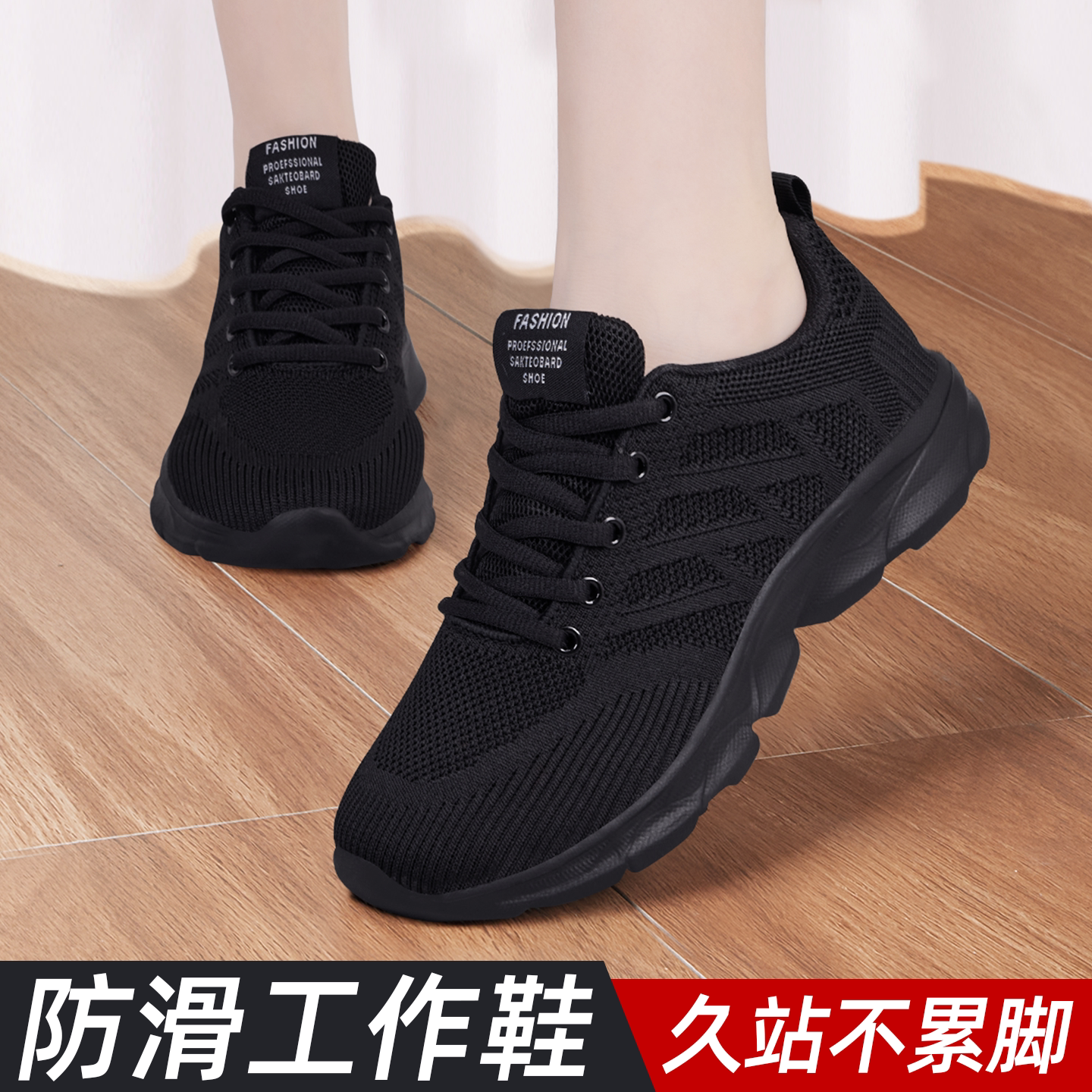 老北京布鞋 防滑上班厨房工作鞋 软底不累脚透气黑色运动鞋 女春新款