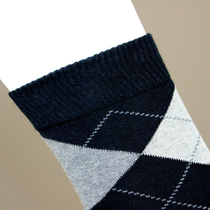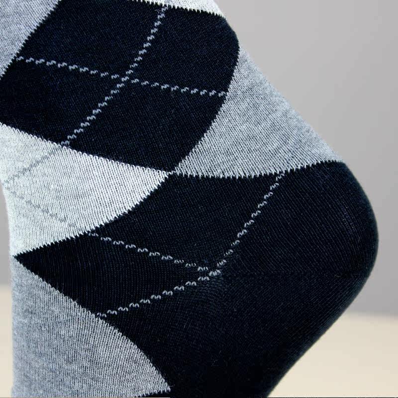 华高棉袜透气舒适春秋款 短袜子71178 菱形提花长筒精梳棉氨男式