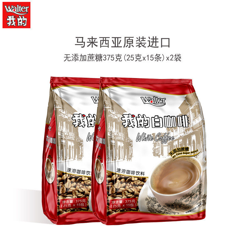 进口无蔗糖添加二合一速溶粉无糖精条袋装 白咖啡马来西亚原装 我由