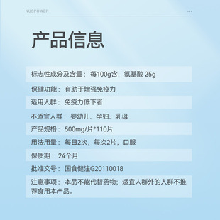 为您提供商品纽斯葆氨基酸片110片复合安基酸体质增强免疫力成人男女中老年人的详细介绍,