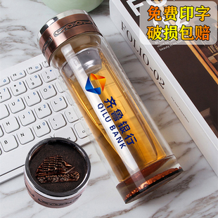 定制双层玻璃杯订做开业纪念礼品杯子居家泡茶杯子广告杯刻字印字