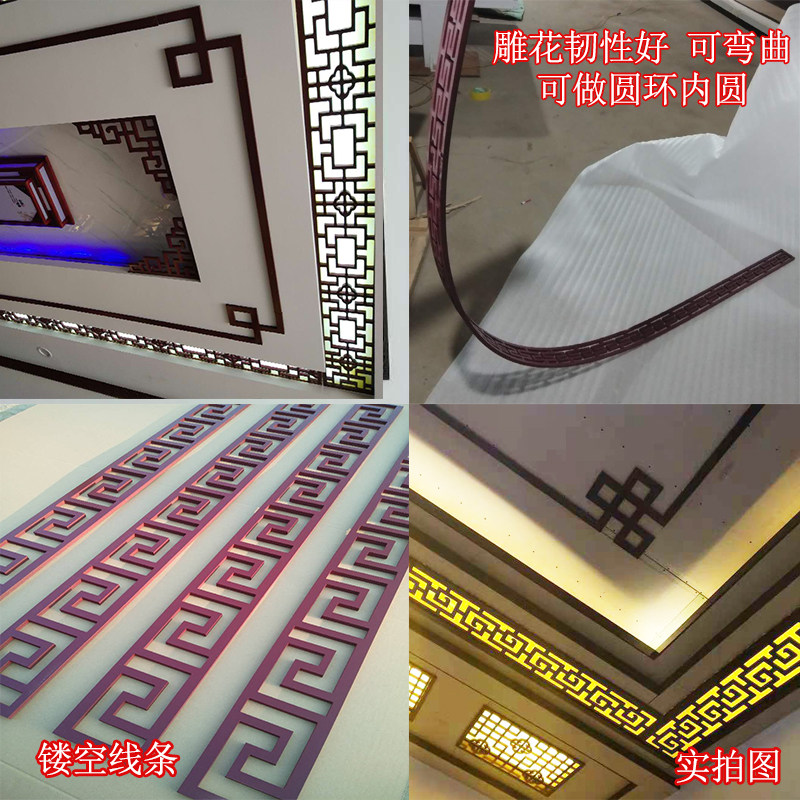 PVC镂空雕花板新中式 饰通花板 线条吊顶花格隔断客厅走廊背景墙装由