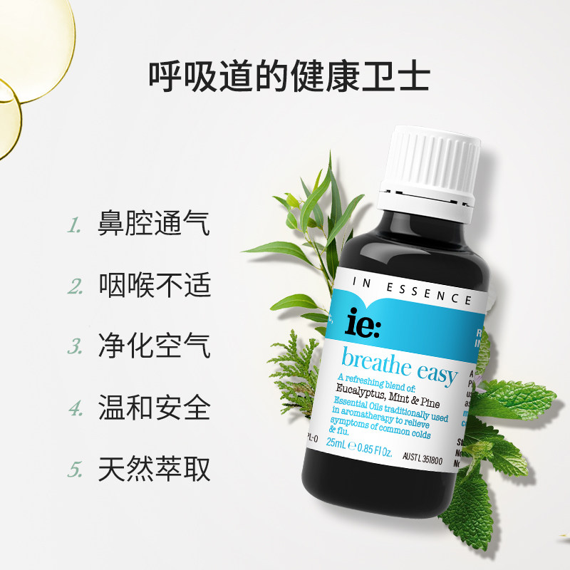 ESSENCE澳洲ie精油呼吸顺畅精油尤加利提神薄荷香薰通鼻精油
