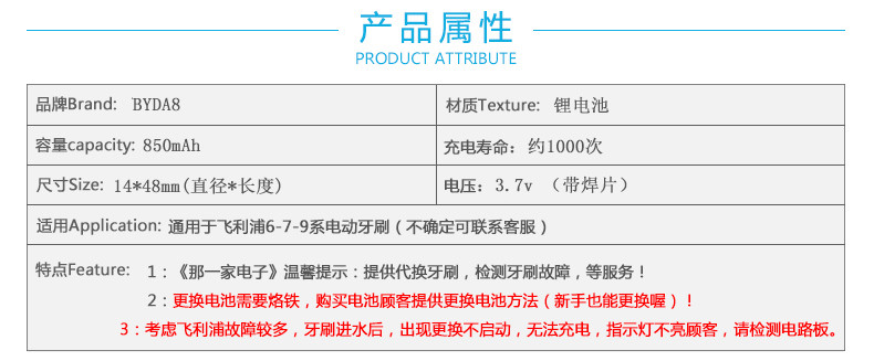 为您提供商品HX9352 飞利浦电动牙刷HX6512 HX6712 HX9362 hx9924电池 HX6721的详细介绍,