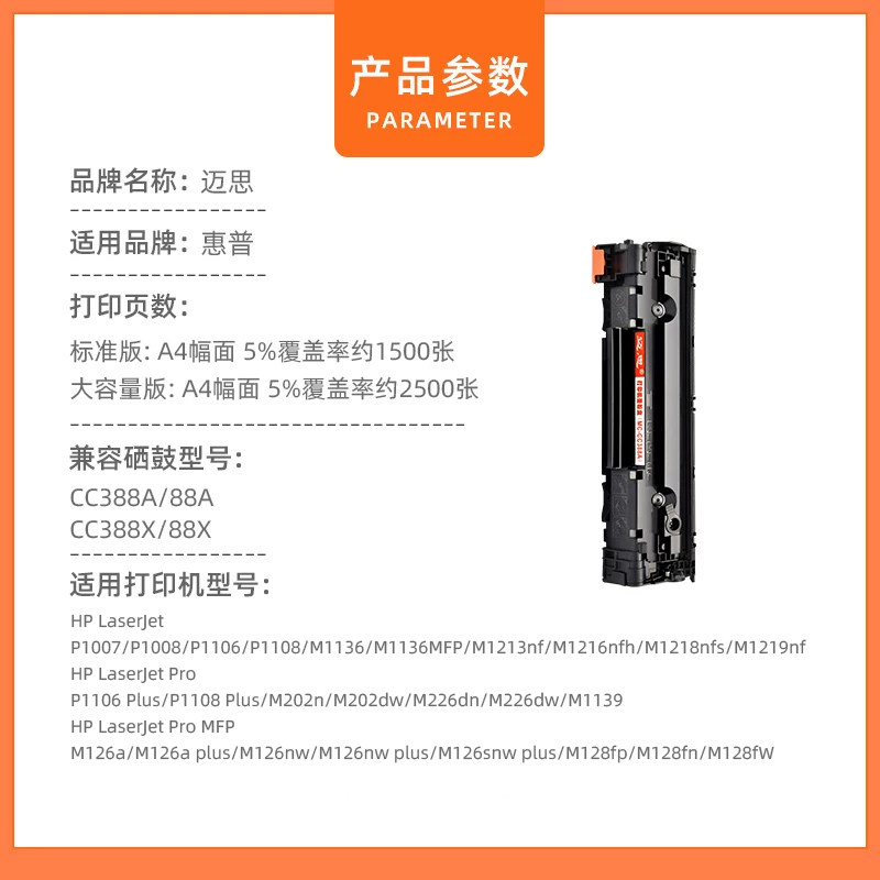 p1008 适用惠普m1136硒鼓88a打印机m126a 388a墨盒cc388a碳粉盒 p1108 p1106 nw晒鼓m1213nf m128fn粉盒p1007