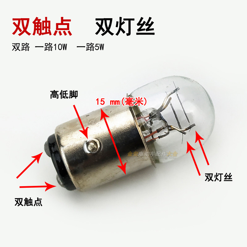 为您提供商品电动车刹车灯泡摩托车尾灯12V48V60V高低脚双灯丝双触点10w5w灯泡的详细介绍,