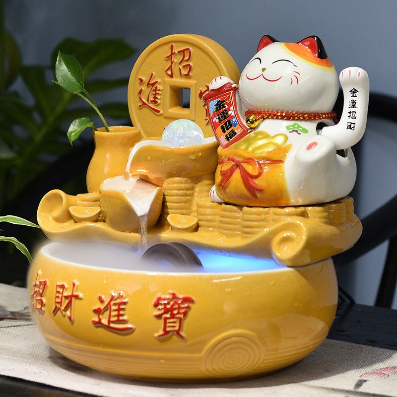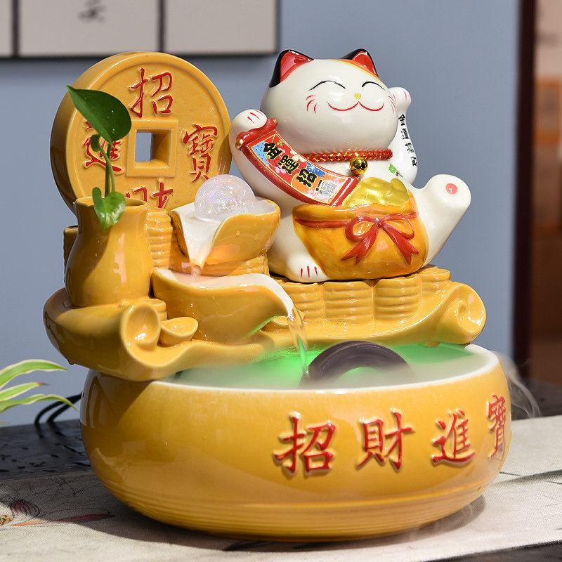 陶瓷流水招财猫摆件收银台自动招手风水轮旺财店铺吧台开业送礼品