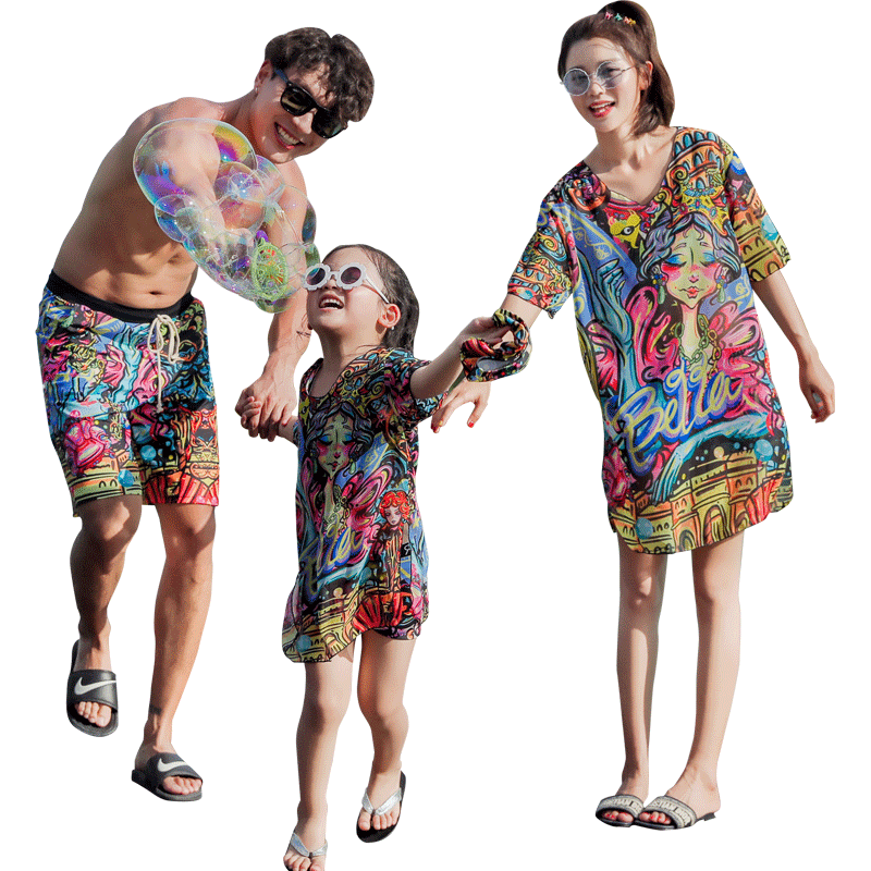为您提供商品母女分体三件套防晒游泳衣一家三口沙滩泳装 亲子泳衣家庭装 新款的详细介绍,