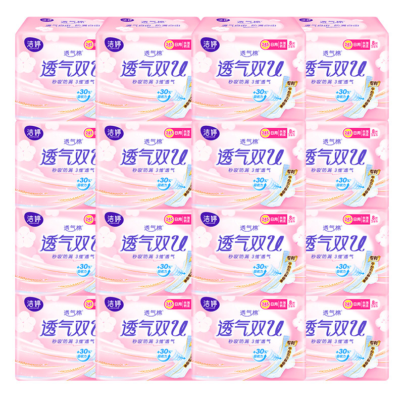 洁婷卫生巾透气双u棉柔日用245mm姨妈女组合装 整箱官方旗舰店正品由