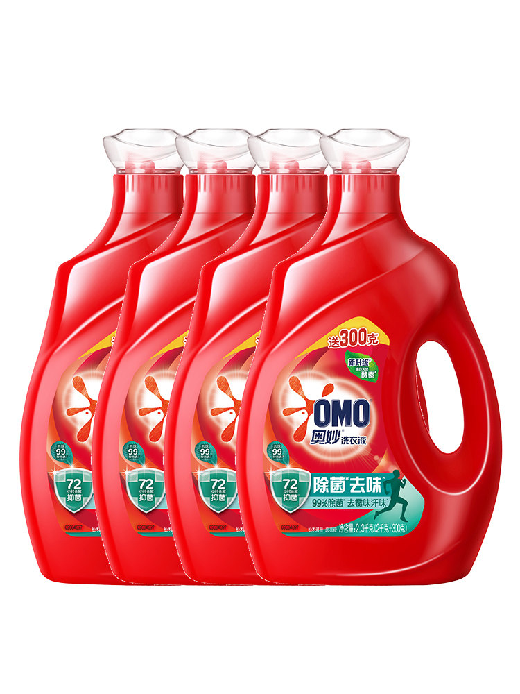 OMO 2.3kg共4瓶 奥妙酵素洗衣液除菌去味有效去渍洗衣液家庭装由