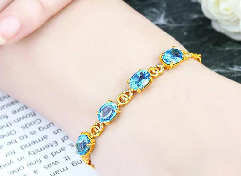 为您提供商品女士托帕石 蓝宝石镶嵌宝石手镯 镀24K黄金2020新款 越南沙金手链的详细介绍,