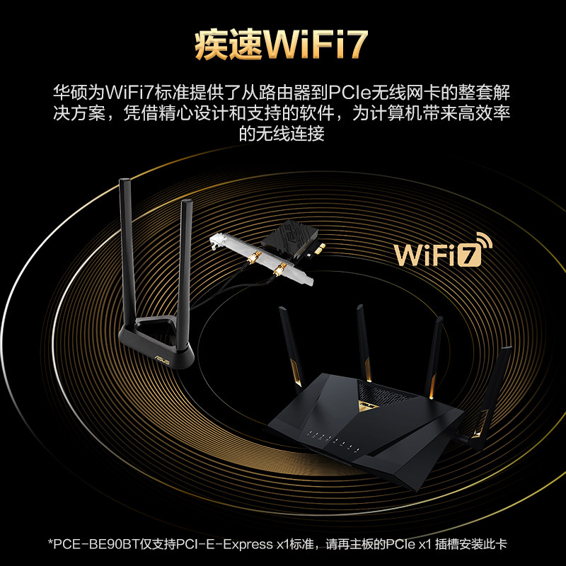 机无线网卡 台式 WIFI7新品 WiFi7台式 BE90BT双频台式 机160Mzh频宽带蓝牙5.4 ASUS华硕PCE