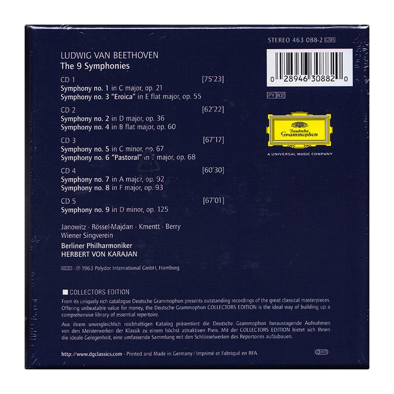 5CD 现货正版 4630882 交响乐 1963年版 卡拉扬 贝多芬交响曲全集由