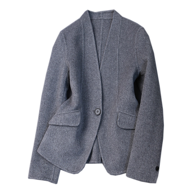 女修身 简约短呢子外套 无领灰黑色双面呢羊毛小西装 2024年秋冬新款