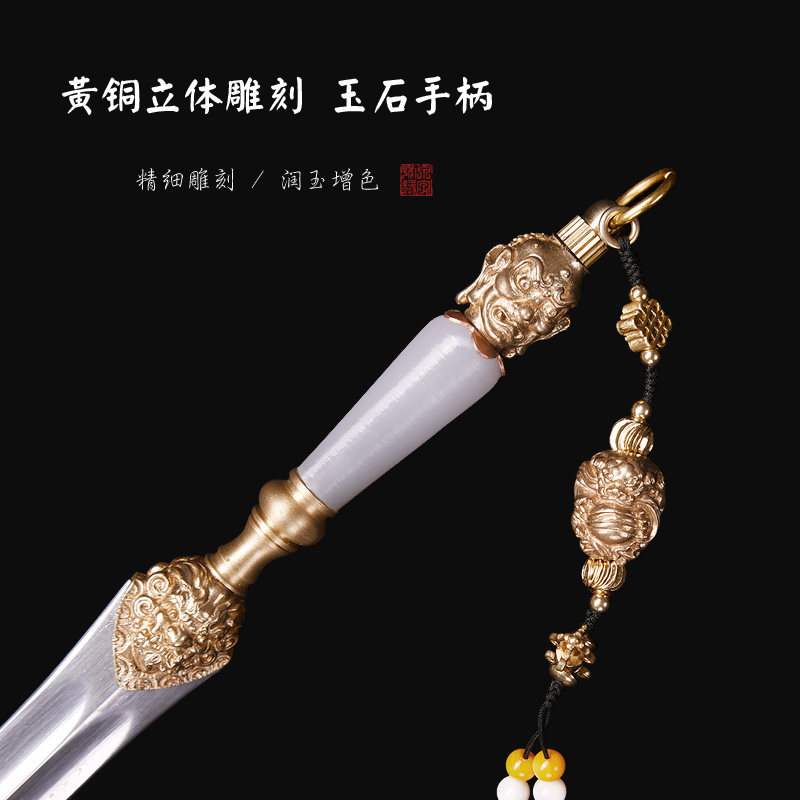 为您提供商品龙泉市泉字号宝剑铜雕玉柄茶剑立体佛魔像花纹钢手工文玩剑未开刃的详细介绍,