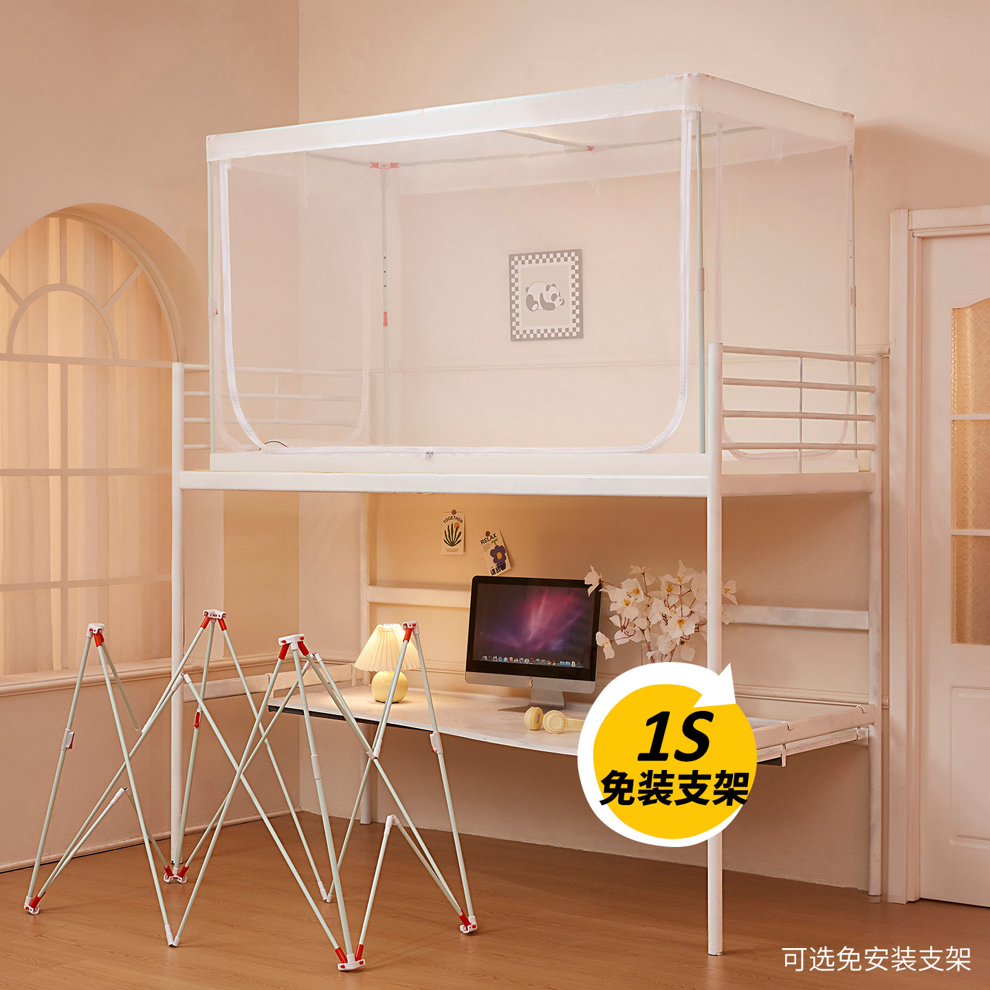 卧室免安装 儿童防摔尘可折叠纹帐双门 蒙古包蚊帐家用2026新款 夏季