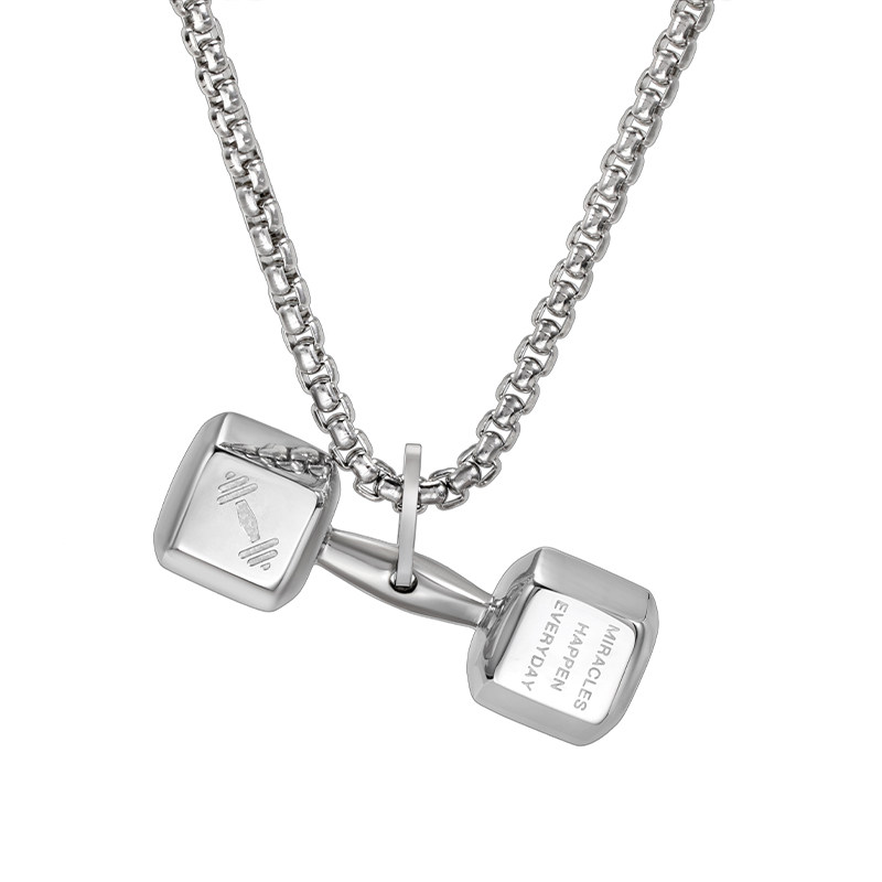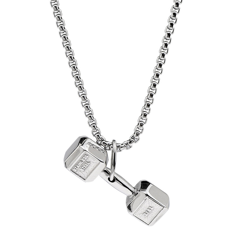 Dumbbell 潮嘻哈健身运动钛钢哑铃吊坠项链男hiphop欧美 necklace