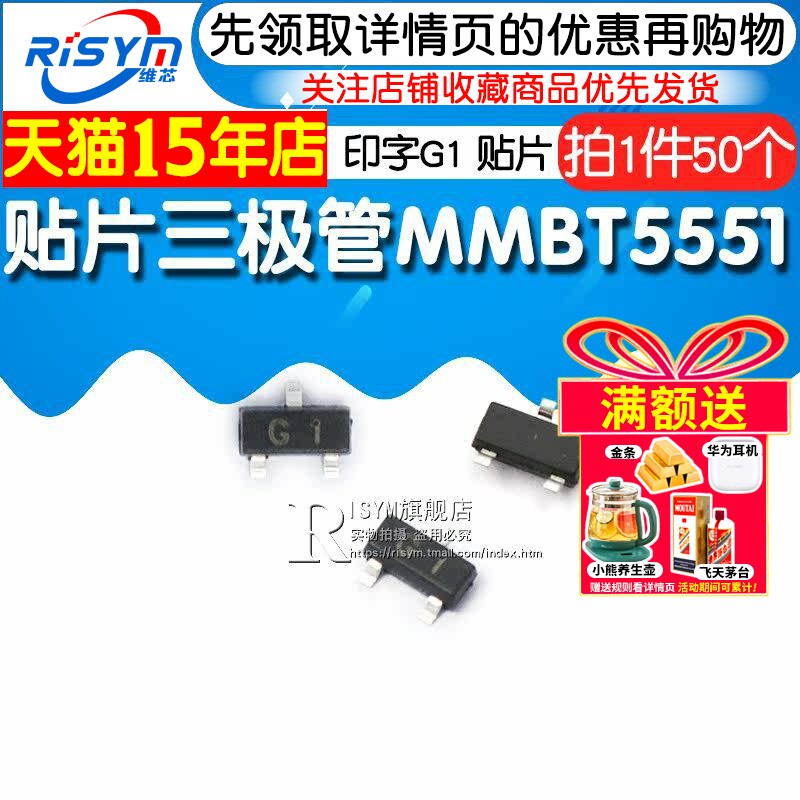为您提供商品NPN Risym 50只 2N5551贴片 印字G1 贴片三极管 MMBT5551LT1G的详细介绍,
