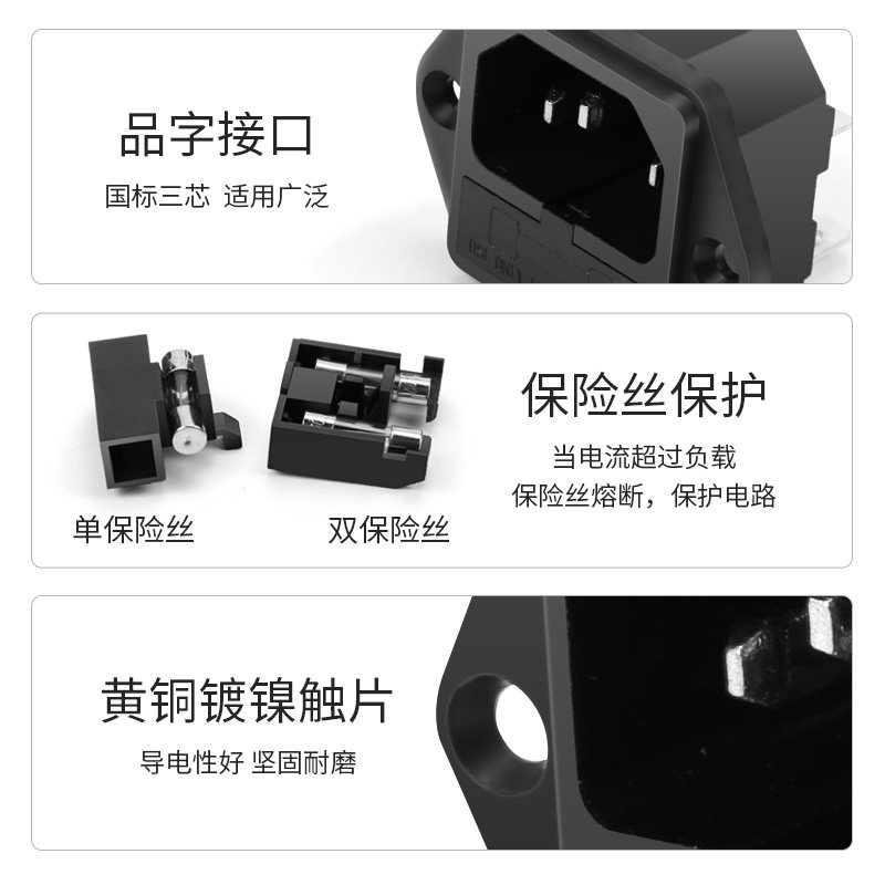 为您提供商品AC品字电源插座带保险3眼公座10A品字插座器具带耳螺丝固定3C认证的详细介绍,