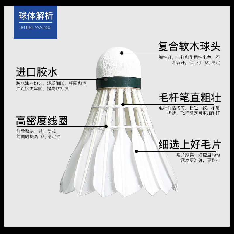 耐打抗风羽毛球比赛训练专用稳定室外学习训练球 羽毛球鹅毛12支装