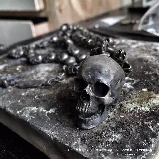 主师原创纯手工焊接打造925纯银暗黑骷髅 珠链项链吊坠 包邮由