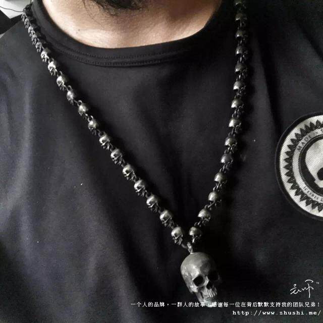为您提供商品主师原创纯手工焊接打造925纯银暗黑骷髅 珠链项链吊坠 包邮的详细介绍,